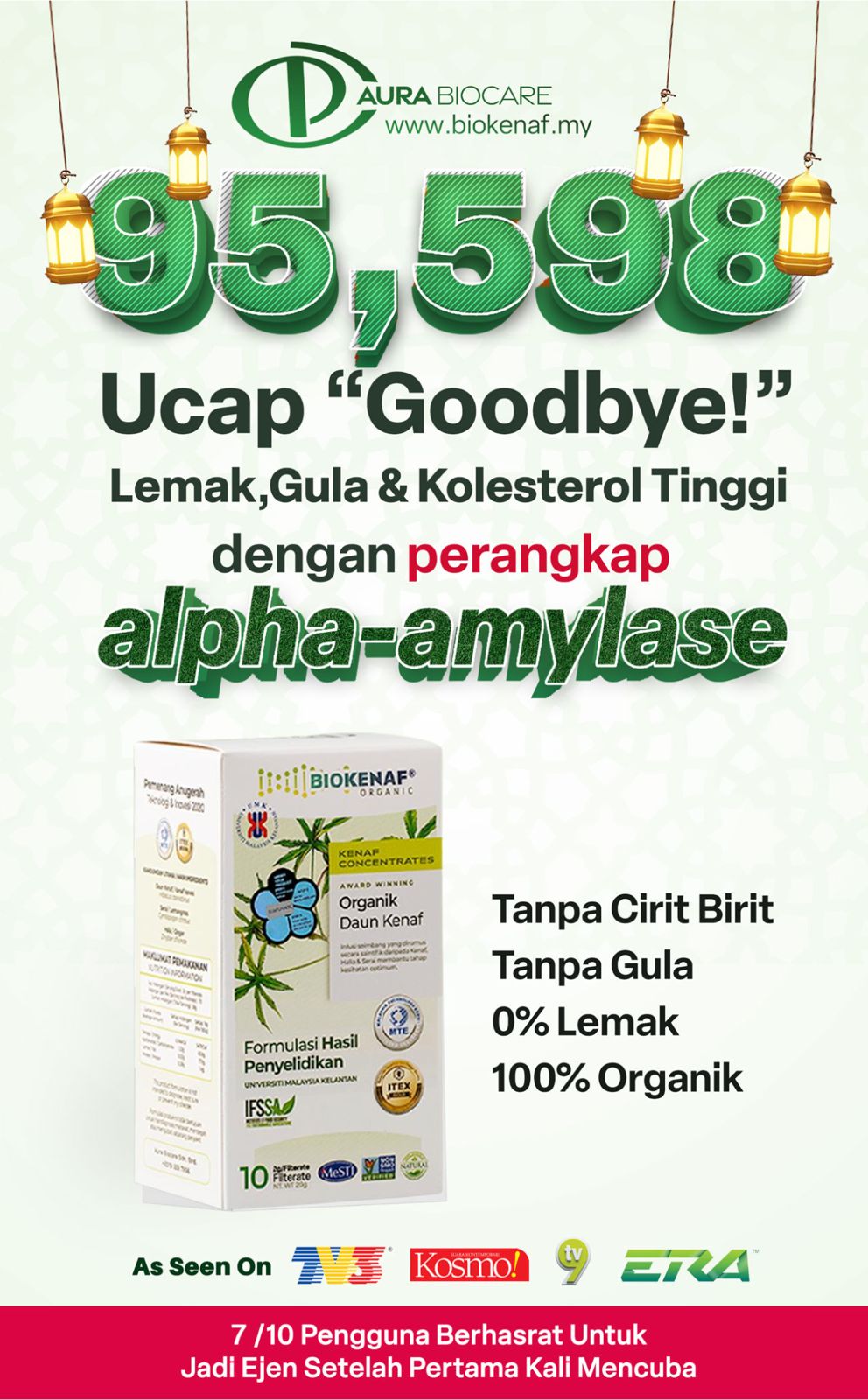 Biokenaf® diformulasi untuk target halang alpha-amylase dari memecahkan karbohidrat kepada gula & hentikan pembentukan lemak & triglycerides di hati.